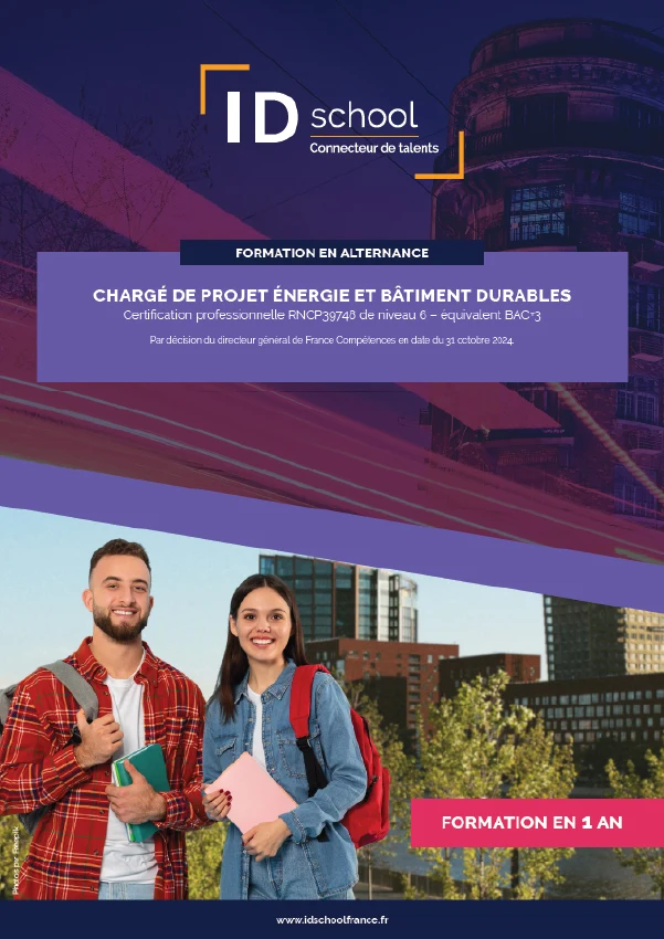 La formation vise l’obtention de la certification RNCP39748 « Chargé de projet énergie et bâtiment durables » de niveau 6, équivalent Bac+3, par décision du directeur général de France compétences en date du 31/10/2024.
